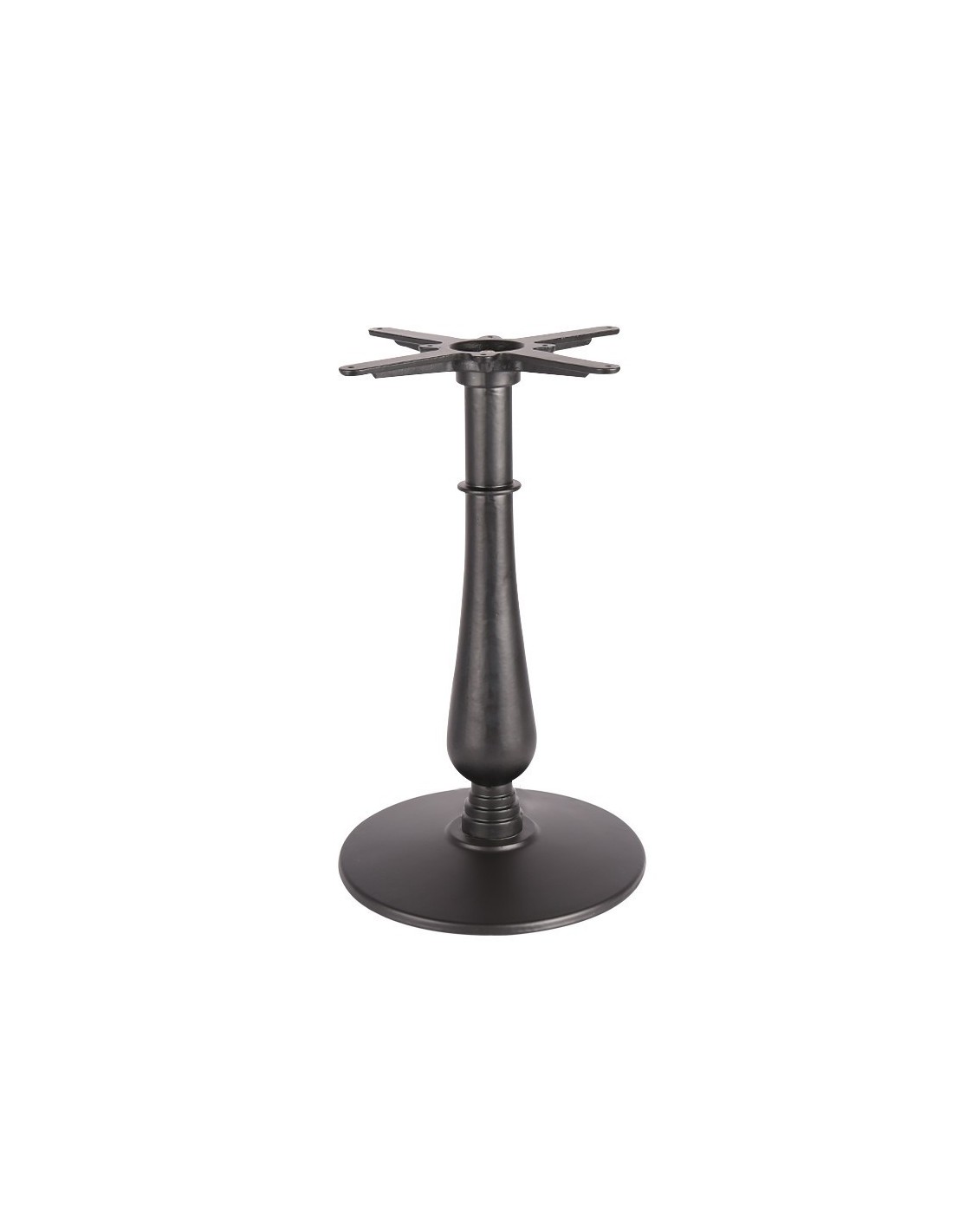 -Base y columnas de hierro, revestidas en pintura epoxi de color negro. Base de 70 x 40 cms.