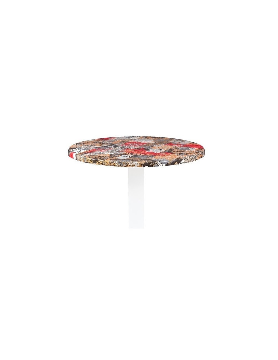 Mesa de diseño, multiusos, formada por base de hierro con acabado negro de 72 cms altura y tapa de 70 cms de diámetro. Color a elegir.