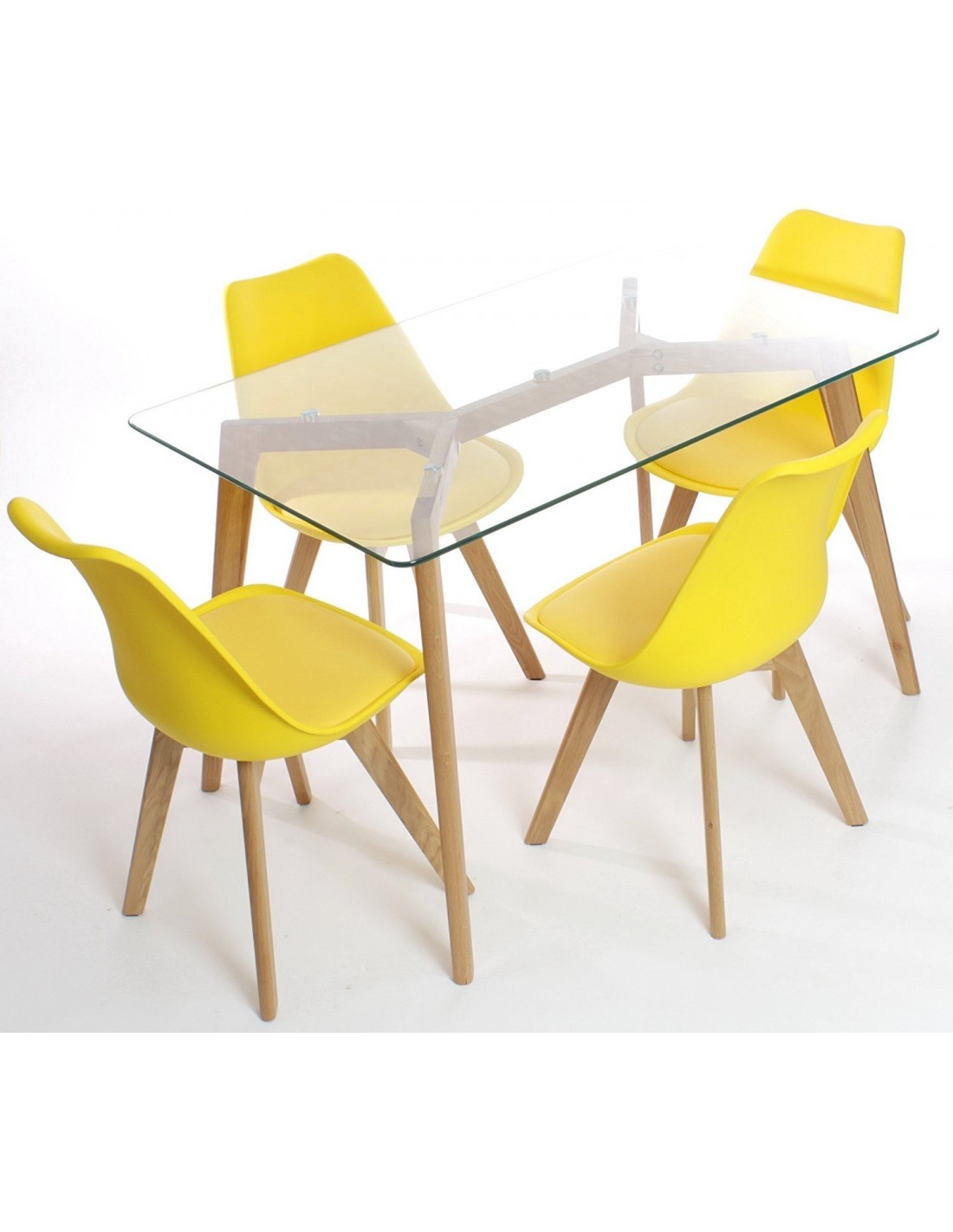 Silla TORRE 4P (HT), madera, polipropileno y cojín amarillo