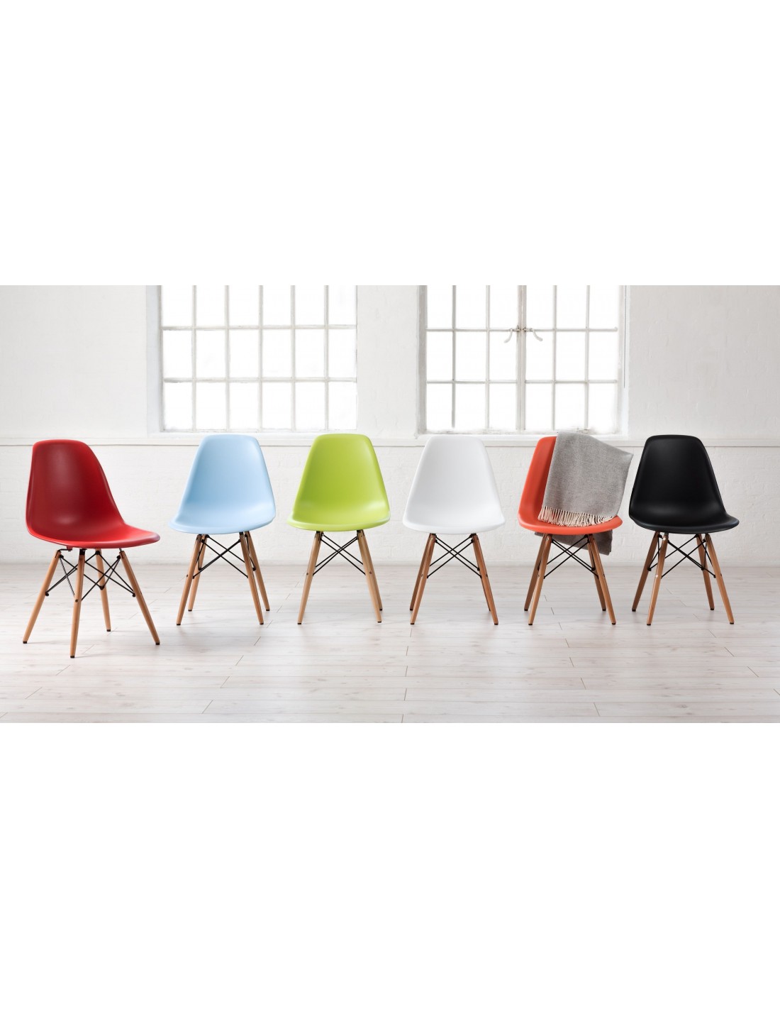 Silla moderna, madera de haya, carcasa de polipropileno blanco, cojín de asiento en similpiel blanca. Otros colores disponibles.