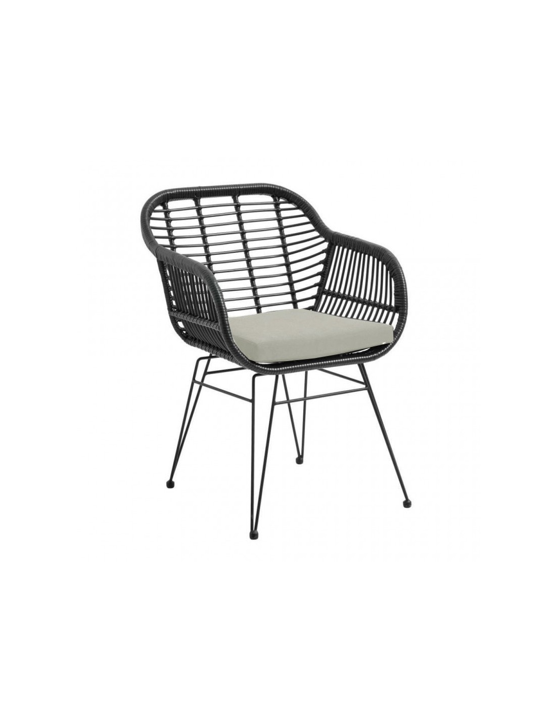 Sillón YAKARTA, metal, cojín beige, ratán negro