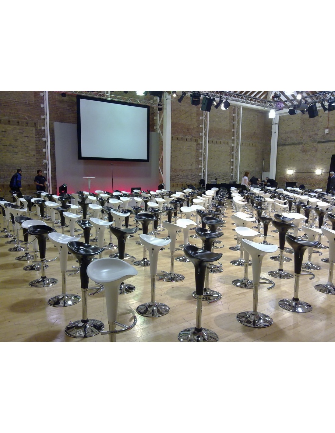 Taburete de diseño, metal, asiento de polipropileno de color negro