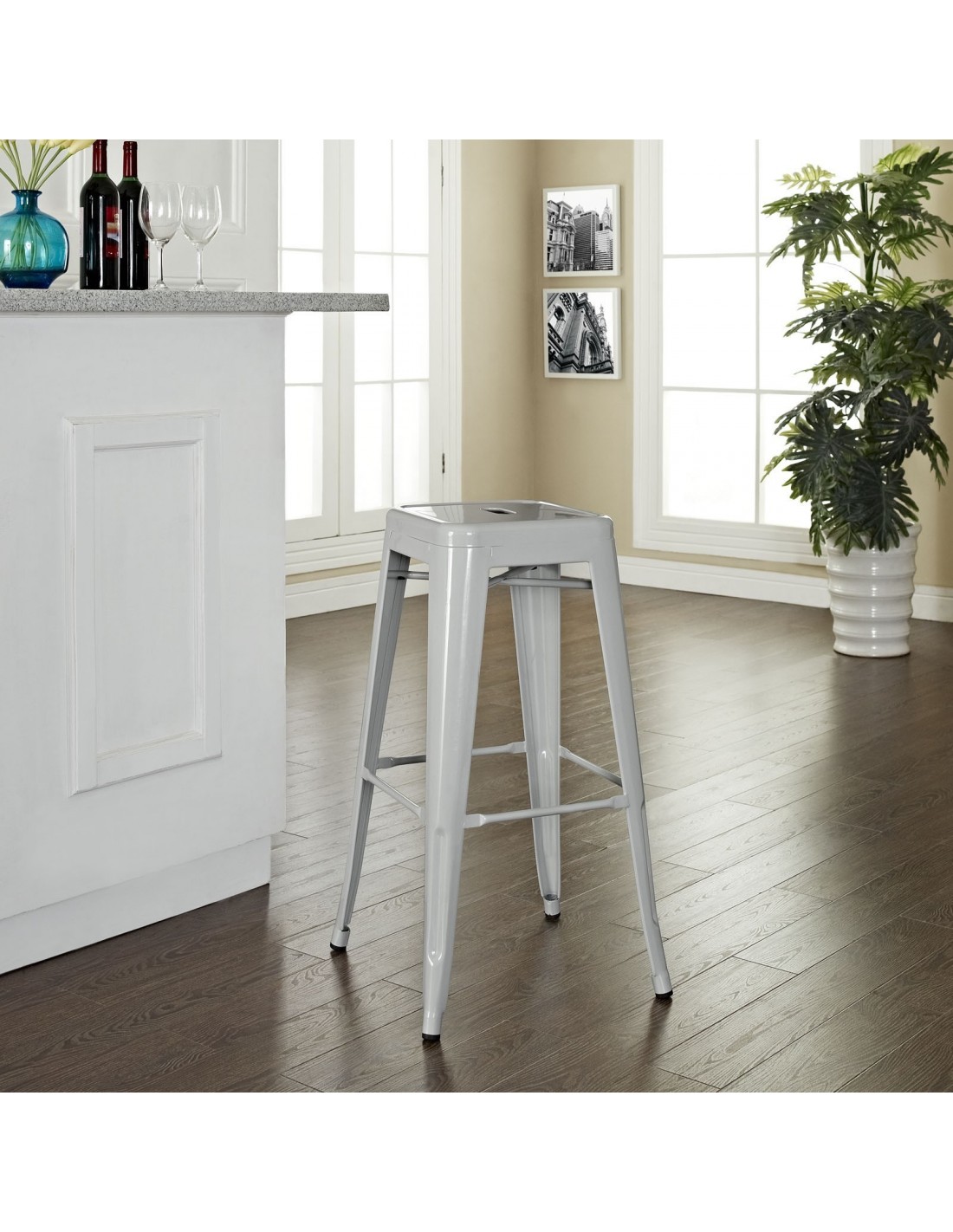 Taburete TOL, acero, blanco